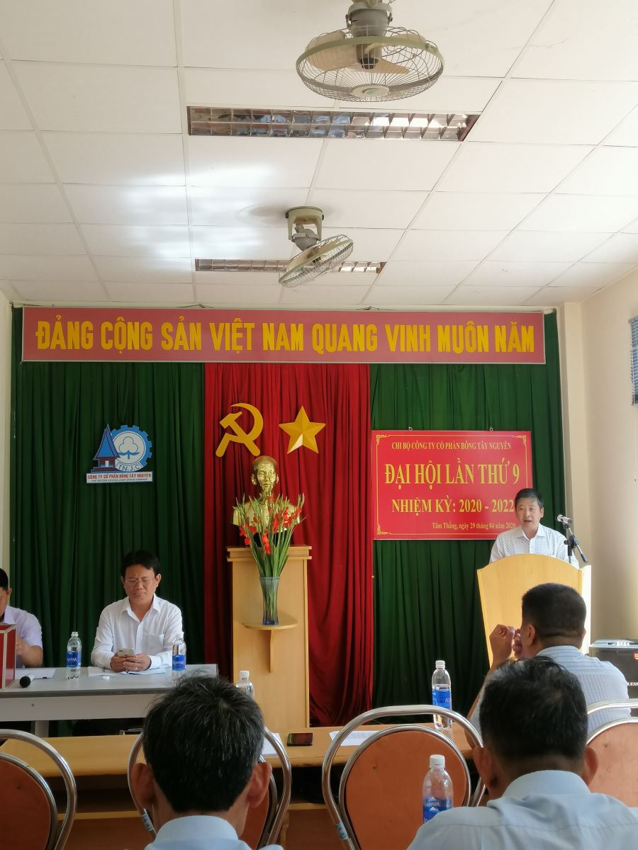 Ngày 29/4/2020, Chi bộ Công ty cổ phần bông Tây Nguyên thuộc Đảng bộ Cơ quan Đoàn thể thành phố đã long trọng tổ chức Đại hội Chi bộ, nhiệm kỳ 2020 – 2022. Tham dự Đại hội có các đồng chí đại diện Đảng bộ Cơ quan Đoàn thể thành phố cùng các đồng chí đảng viên của Chi bộ Công ty cổ phần bông Tây Nguyên. Đồng chí Nguyễn Thanh Liêm – Thành ủy viên, Phó Bí thư Đảng bộ cơ quan đoàn thể thành phố, Chủ tịch liên đoàn lao động thành phố đã tới dự và chỉ đạo Đại hội.