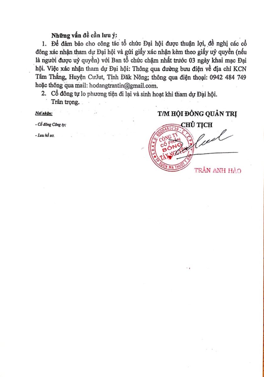 Hội đồng quản trị Công ty cổ phần bông Tây Nguyên kính mời Quý cổ đông tham dự Đại hội đồng cổ đông thường niên năm 2020