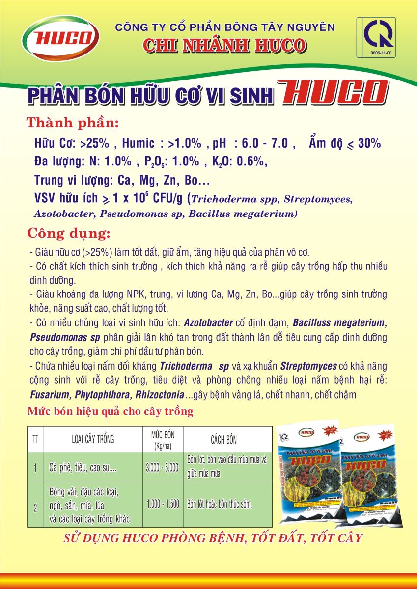 Phân hữu cơ vi sinh HUCO dùng cho cây tiêu
