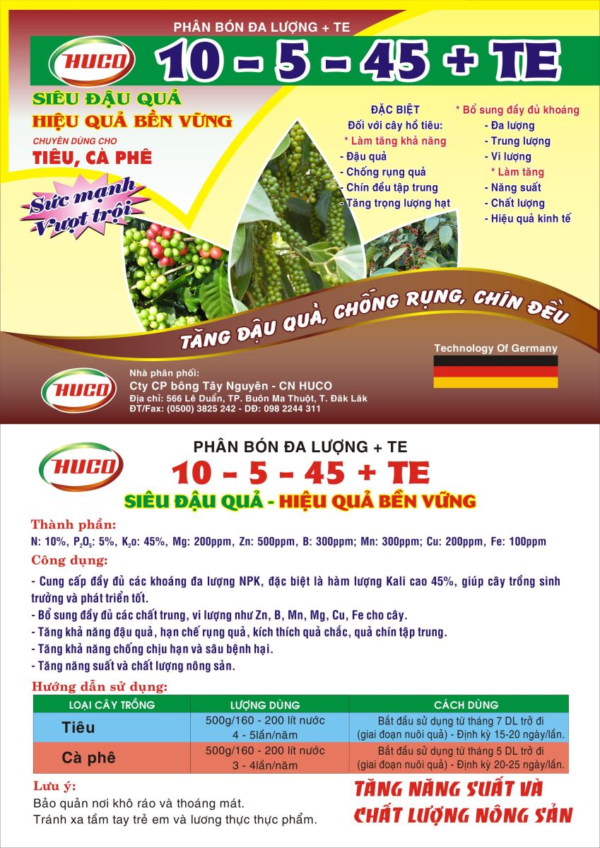 Phân bón đa lương + TE 10-5-45+TE Siêu đậu quả - Hiệu quả bền vững